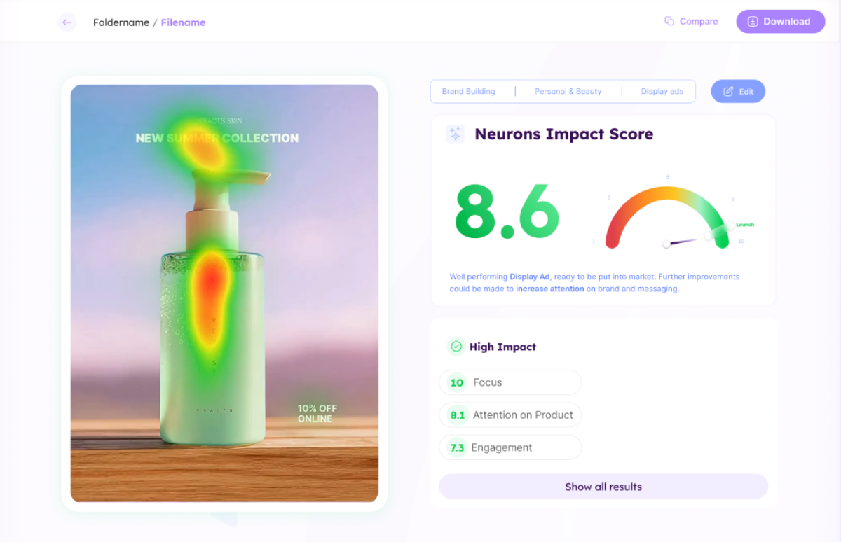 Neurons helps teams track their advertising impact through neuroscience-backed AI. With our suite of tools, you can effectively track and optimize your brand-building creatives to drive better results.