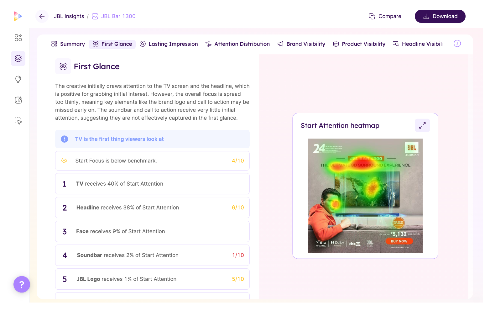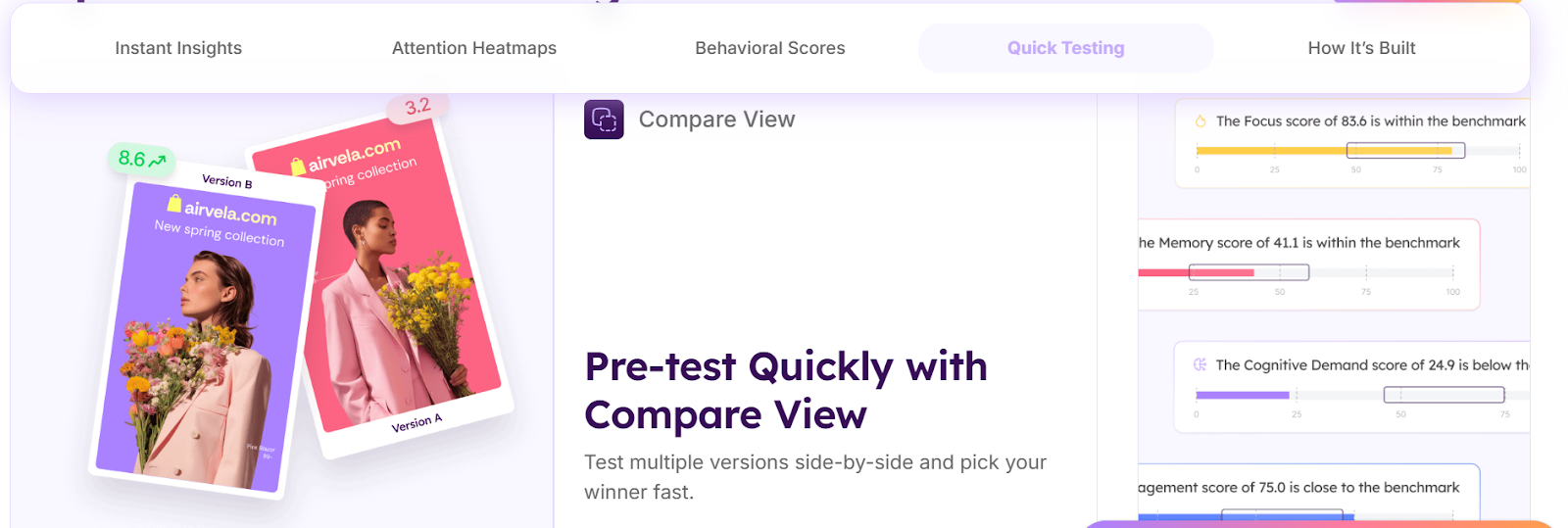 Neurons AI takes the lead as the creative testing platform for validating branded assets before launch. The platform uses artificial intelligence to predict how much attention an image or ad will get and how likely people are to remember it.